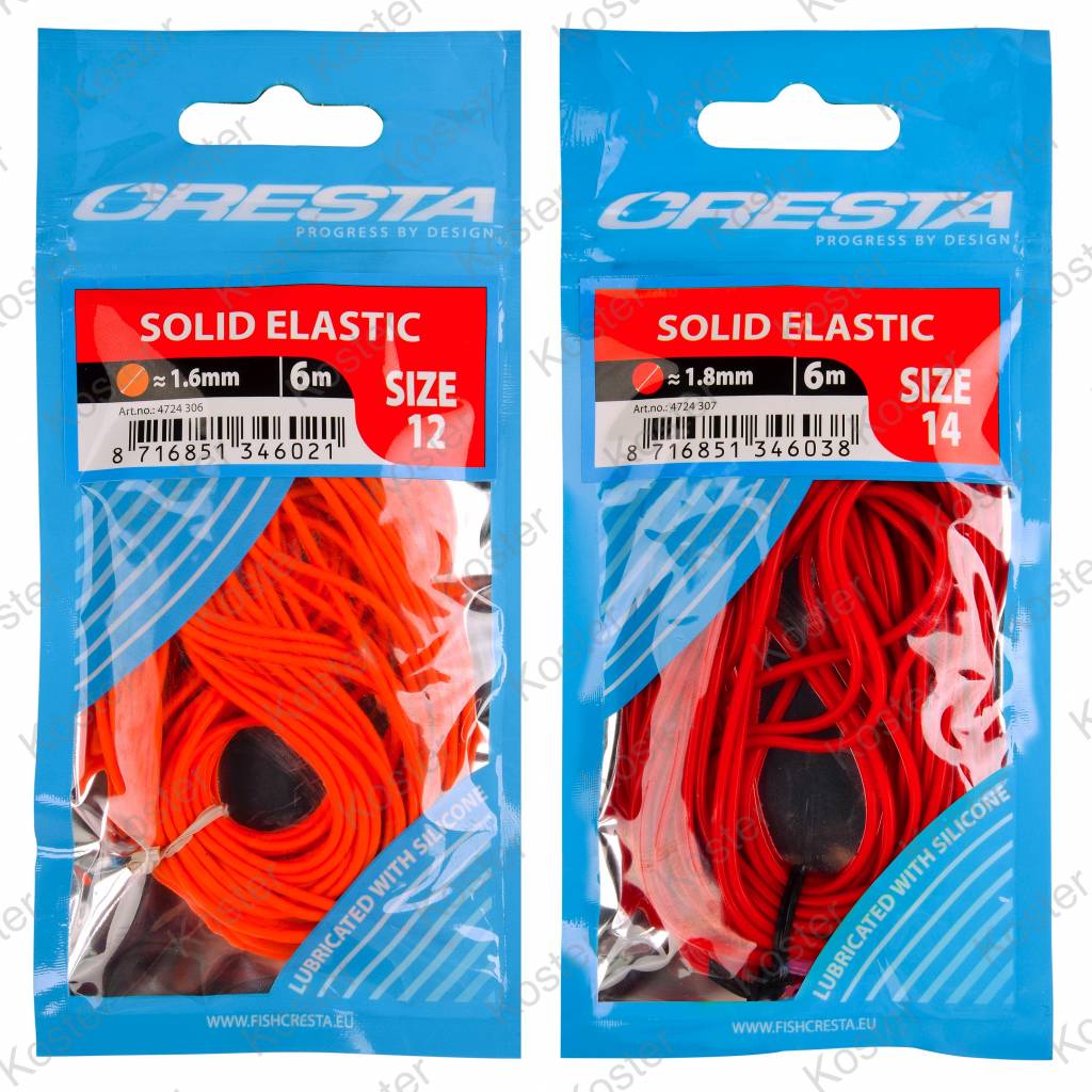 Dit slijtvaste, gekleurde latex is de juiste keuze voor zowel de competitievisser als de recreant. Dankzij de zeer herkenbare, verschillende kleuren is het elastiek goed te volgen tijdens de dril en is het gemakkelijk om de diverse diameters te herkennen. Door het weglaten van een winder staat er geen spanning op het elastiek, waardoor de kwaliteit langdurig gegarandeerd blijft. De toegevoegde vloeibare siliconen zorgt voor een soepel verloop door de top. Cresta Solid Elastic wordt geleverd in een lengte van 6 meter, wat voldoende is voor 2 tot 3 hengeltoppen. Voor allround gebruik voor witvis en karper.
