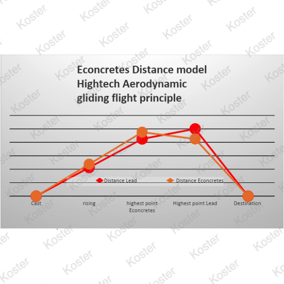 Ons hightech aerodynamische afstandsmodel is ontworpen om dezelfde of een zelfs grotere afstand te realiseren in vergelijking met standaard loodvisgewichten.