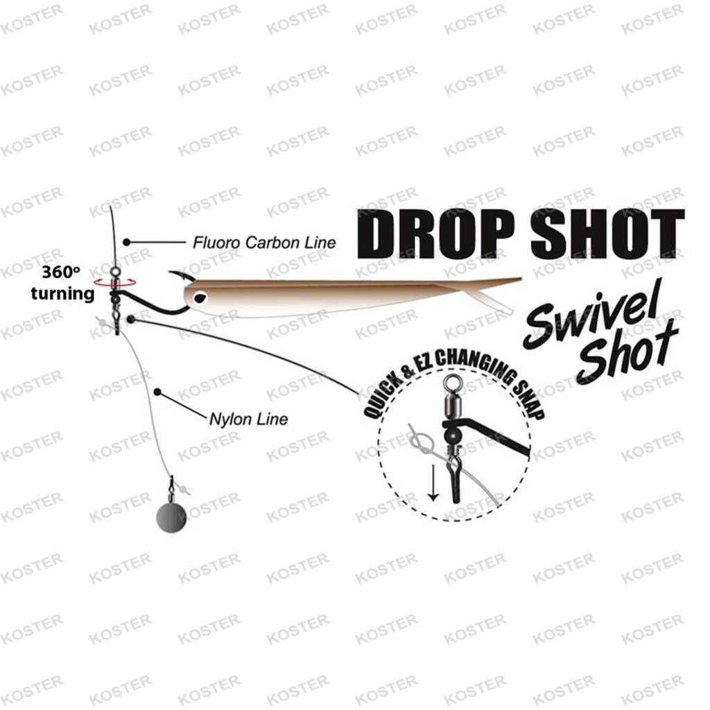 Een Drop Shot haak met vele mogelijkheden. Aan de bovenzijde van deze haak bevindt zich een wartel en aan de onderzijde een kraal en een Quick & EZ Changing Snap. Deze gepatenteerde haak is gemakkelijk om te toveren tot een Drop Shot Rig. De haak kan 360 graden draaien waardoor de lijn zal niet kinken en het kunstaas een fantastische natuurlijke actie heeft. Het veranderen van diepte en het aanpassen van de onderlijn wordt nu een peulenschil. De haak zal altijd horizontaal op de lijn zitten waardoor u gegarandeerd meer vis zal vangen.