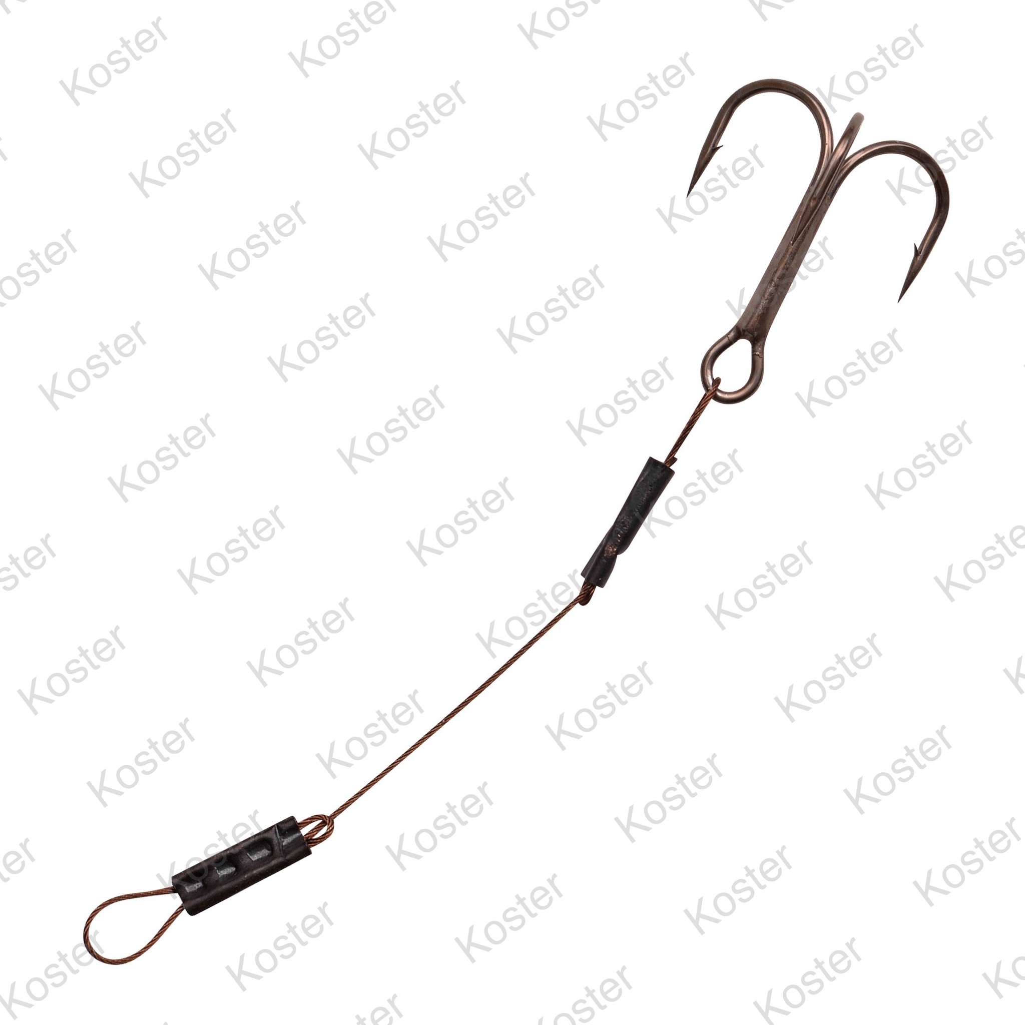 Topkwaliteit slingers voor montage op softbait of aasvis. Gemaakt van onverwoestbaar 40lbs American Fishing Wire in camouflage bruine uitvoering. Het 7x7 (49 strand) RVS staaldraad is soepel en heeft weinig geheugen. Uitgevoerd met de populairste dreg van Gamakatsu; de Treble 13B bewijst dit product dat topkwaliteit ook heel betaalbaar kan zijn!