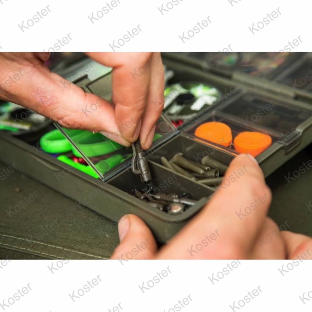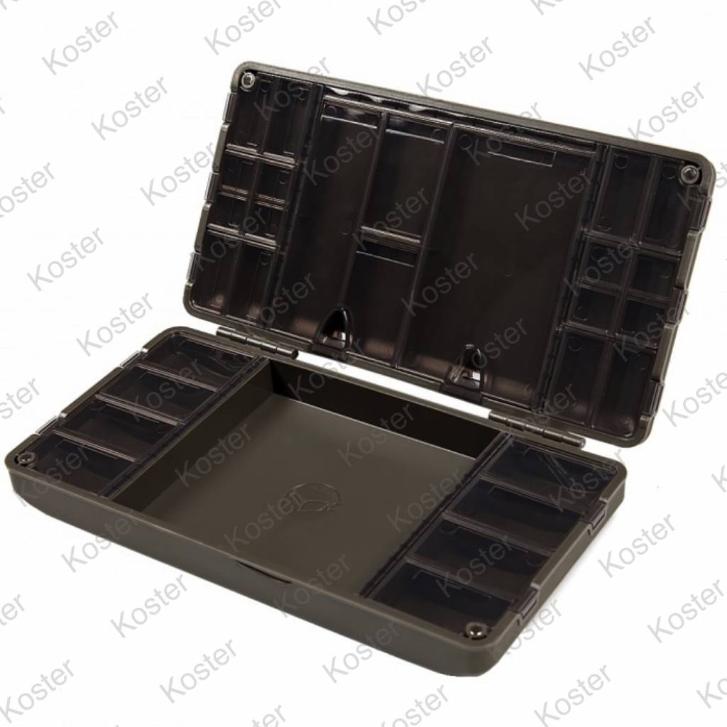 Aan de zijkanten van dit centrale deel trek je compartimenten aan die perfect zijn voor het opbergen van bijvoorbeeld lead clips, tail rubbers en soortgelijke producten. De goed sluitende deksels zorgen er voor dat de producten op hun plek blijven, maar zijn ook met koude handen makkelijk te openen.