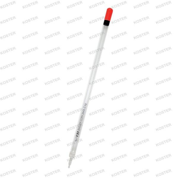 Een transparante kunststof dobber met oranje top. Geschikt voor het vissen op karper in vijvers en meren.