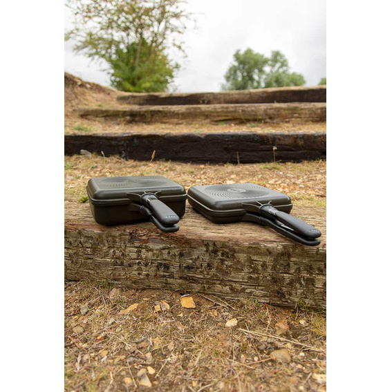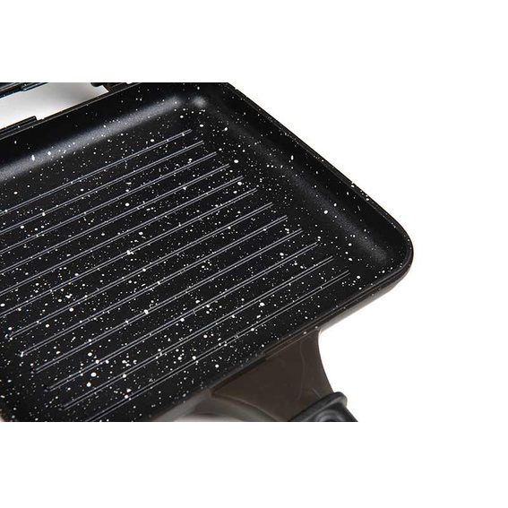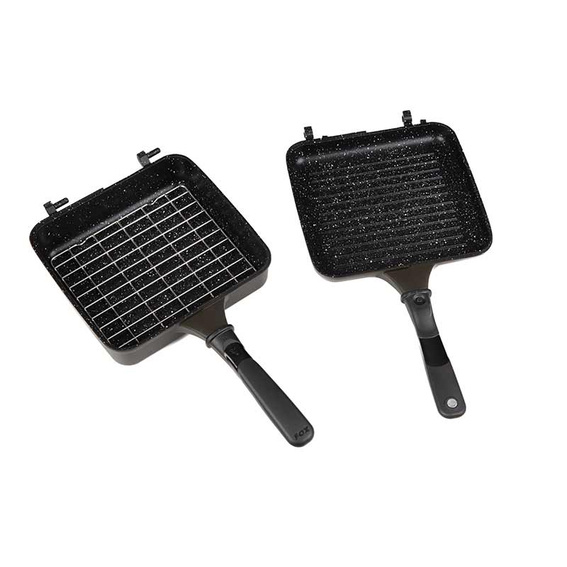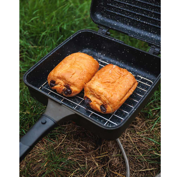 - Kookgerei Multi-Pan - 198 mm x 185 mm x 45 mm, een gladde helft - 22,5 mm diep, een bakplaat - 22,5 mm diep.