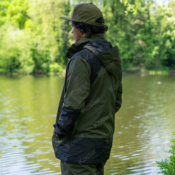 Het Neoteric Suit is voorzien van een extra duurzame 5000mm waterdichte en ademende stof. De stoffen panelen zijn ontworpen om maximale bescherming tegen de elementen te bieden met grote bewegingsvrijheid. Deze dynamische constructie zorgt voor een betrouwbaardere barrière, omdat de tapenaad van 5000 mm gemakkelijker aan de stof kan hechten. Pakken bevatten een regenjas en een comfortabele slabbetje en brace. Klittenband manchetten, verstelbare elastische tailleband en capuchon.