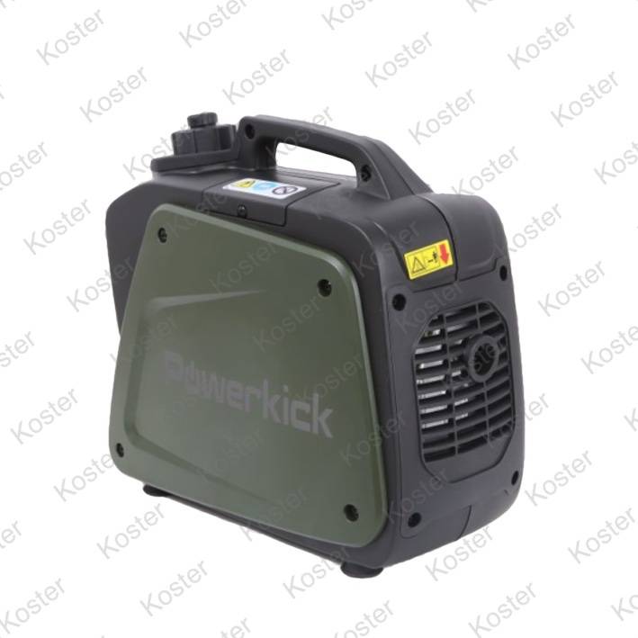Onze "Powerkick 800 outdoor" is zoals de naam al zegt speciaal gemaakt voor mensen die er op uit trekken in de natuur, bootbezitters en karpervissers. Deze generator is speciaal in een donkergroene versie geproduceerd. De "Powerkick 800 outdoor" is ideaal voor het laden van telefoons, laptops, ipad’s, accu’s en licht huishoudelijke apparatuur die de maximale output niet overschrijden. Het model 800 outdoor heeft een 4 takt 40 cc motor die maximaal 800 Watt levert met een continu output van 700 Watt. De unit is erg handzaam (40 x 21 x 36 cm (LxBxH) en heeft een gewicht van 8,5 kg. De benzinetank heeft een capaciteit van 2,1 liter. Hier kan de generator ruim 4 uur op draaien. Het model 800 maakt gebruik van de nieuwste Inverter techniek (toerental wordt automatisch geregeld door afname watts). Mede hierdoor kunnen wij ultra stille generatoren produceren met een geluidsnorm van 58 db op zeven meter afstand. Deze generator is CE gekeurd en heeft een Intertek GS certificaat. Ideaal voor de langere sessies om alle accu's op te laden.