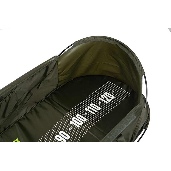 Het op de mat geprinte meetlint van 130cm en het vak voor onthaakgereedschap combineren functionaliteit met gebruiksgemak.