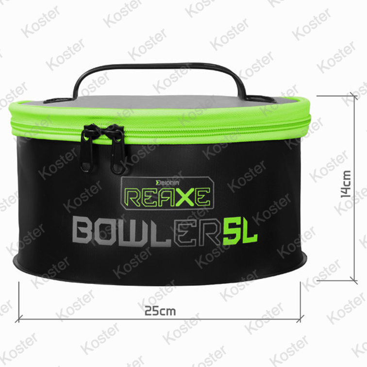 Het is een praktische tas voor fans van feeder en methode feeder. Karpervissers of degenen die de voorkeur geven aan floatvissen zullen het echter ook waarderen. Je kunt de tas gebruiken om aasmixen te vervoeren, maar ook om verschillende visspullen en accessoires op te bergen. Met de ronde vorm van de zak is het gemakkelijk om een aasmix, deeltjes of pellets voor te bereiden en op te scheppen. Omdat het geen hoeken heeft, wordt het aas gelijkmatig vochtig voor de perfecte consistentie en het best mogelijke effect. De tas is gemaakt van een duurzaam EVA-materiaal dat waterdicht en gemakkelijk schoon te maken is. Het heeft ook een deksel met een kwaliteitsrits en twee trekkers om een optimale luchtvochtigheid van de mix te behouden, zelfs bij langere sessies. Bovendien heeft de hoes een praktische transportriem. Het is ontworpen in de kleuren van de feedercompetitieserie genaamd REAXE by Delphin.