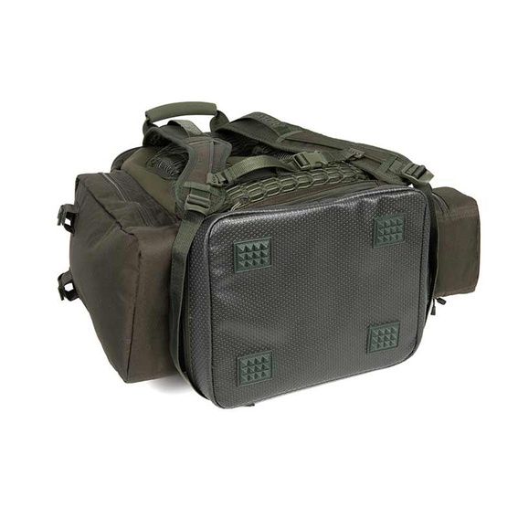 - Uitgebreide opslag opties: Een zijvak over de gehele lengte, twee kleinere zijvakken (één voor een rig bin) en een grote open compartiment voor veel materiaal, inclusief Predator Deadbait Bags.
