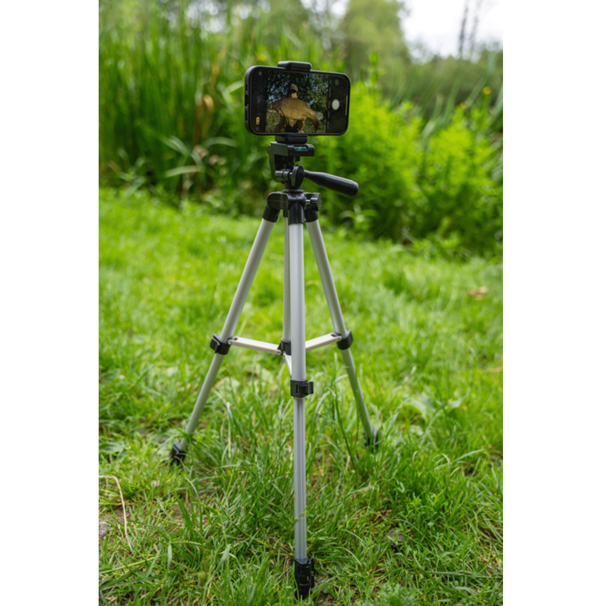 - Een lichtgewicht, compact statief om te helpen bij zelf opnamen tijdens het vissen.