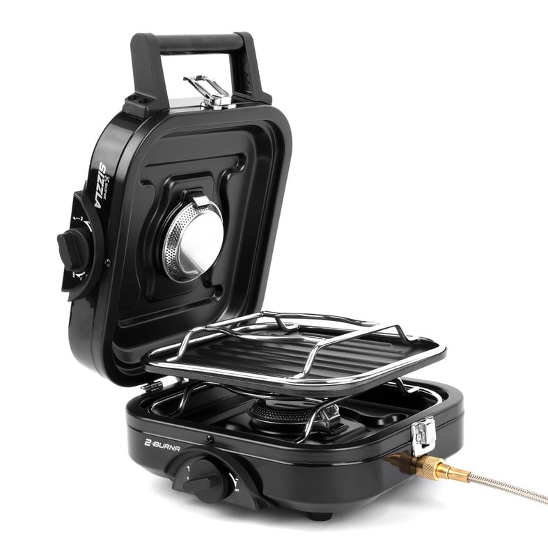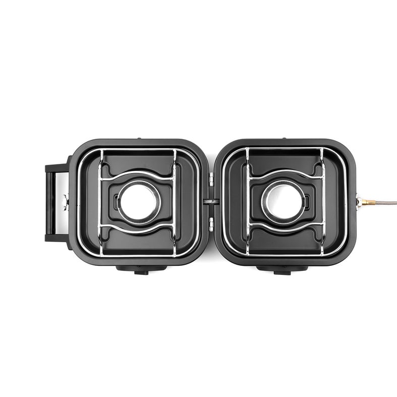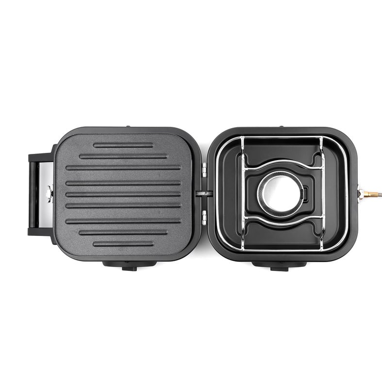 Het slimme ontwerp zorgt ervoor dat je de gaspit snel kunt opzetten: simpelweg uitklappen en de gasbus aansluiten. De meegeleverde kookplaat maakt het mogelijk om niet alleen te koken, maar ook voedsel op te warmen of te grillen.