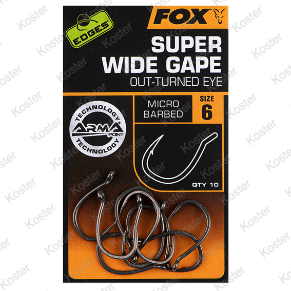 Deze haak is de versie met het naar buiten staande haakoog van de Super Wide Gape. Perfect voor chod rigs, hinged stiff rigs en fluorocarbon D-rigs. De Super Wide Gape is geboren na veel intensieve discussies met onze consultants en andere zeer ervaren karpervissers. Een zo groot mogelijke gape van de haak zal resulteren in meer gehaakte karpers, is de nadrukkelijke mening van veel karpervissers. Daarom hebben wij een haak ontwikkeld met een grotere gape; zelfs groter dan de gape van onze zeer populaire Wide Gape en Stiff Rig haken. Maak kennis met de Super Wide Gape. Deze haak heeft een lange en brede buiging, een superscherpe, naar binnen staande haakpunt en een grotere gape dan wij ooit hebben ontworpen voor een haak. In de testperiode is bewezen dat deze haak – zelfs in combinatie met de meest eenvoudige rigs – een ongelofelijke karpervanger is. Dankzij deze grote gape is de kans op een goede inhaking – als de karper de haak heeft opgezogen – vele malen groter. Daarom hoeft er minder te worden nagedacht over ‘rig mechanics’ en kan de focus worden gelegd op het bevissen van de juiste spot.