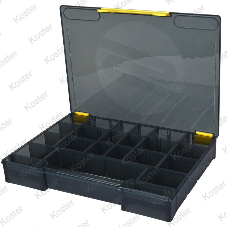 TBX boxen zijn door SPRO volledig ontworpen voor het vissen met kunstaas. De dozen zijn allemaal gemaakt met metrische buitenafmetingen in een modulair maatpatroon, waardoor ze op een uniforme manier kunnen worden gestapeld en in een tackle bag kunnen worden geplaatst. TBX dozen zijn ontworpen met een volledig uniek plat scharniersysteem, wat betekent dat elke kant van de doos plat is. Dit is een geweldige functie omdat het veel gemakkelijker is om de dozen in tackle bags te plaatsen. Elke doos heeft een enkele brede clip aan de voorzijde die met één hand kan worden gebruikt. Een ander uniek aspect van TBX-boxen zijn de secties voor kleine onderdelen. Waar bij normale tackle boxes de randen verspilde ruimte zijn, hebben onze ontwerpers van de gelegenheid gebruikgemaakt om de ruimte te benutten door ondiepe compartimenten toe te voegen voor allerhande kleinmateriaal. Er is zelfs een los verkrijgbare TBX-Tray beschikbaar die compatibel is met de meeste dozen.