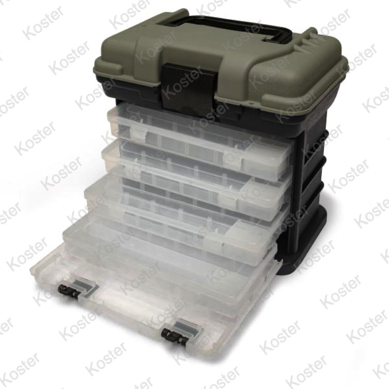 Blijf georganiseerd aan de oever met dit duurzame tacklebox-station. Deze duurzame toren bevat vier materiaal organizers die je er afzonderlijk in kunt schuiven of eruit kunt halen wanneer je ze nodig hebt. Elke organizer heeft verdelers om ze aan te passen. Het gehele systeem is voorzien van een sterke draaggreep en een groot dekselcompartiment. De perfecte metgezel voor een dagje vissen.