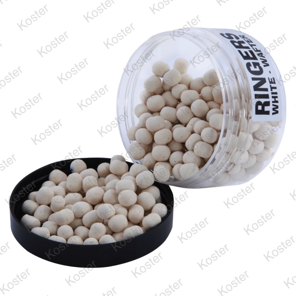 De White Mini wafters van Ringers zijn het perfecte haakaas voor de Feeder en Method feeder. Deze licht drijvende haakaasjes zullen het gewicht van de haak wegnemen waardoor de haak gemakkelijk opgenomen kan worden. Dit zorgt voor meer aanbeten en beter indraaien van de haak. Het haakaas zal zich ook natuurlijker bewegen op de voerstek zodat ook de grotere, schuwere vissen met vertrouwen het haakaas zullen oppakken. Alle wafters zijn wit gekleurd en voorzien van een chocolate flavour die voor vrijwel elke witvis en karperachtigen vissoorten attractief is.